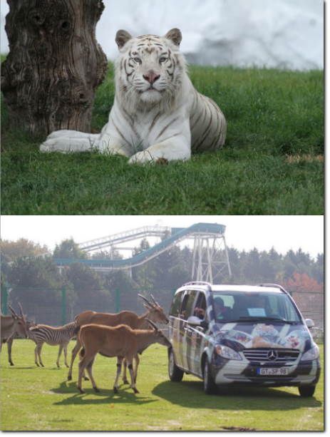 Zoo Safaripark Stukenbrock - Wildlife hautnah… der etwas andere Zoo. Hier leben die Tiere (fast) wie in freier Wildbahn, und die Besucher sitzen im „Käfig“. Nein, natürlich nicht hinter Gittern, sondern im eigenen Auto oder im Safaribus geht es in das Reich der weißen Löwen, den Tiger-Dschungel und über die weitläufige Steppe. Safari in Stukenbrock – eines der letzten großen Abenteuer in Deutschland. Ein atemberaubendes Erlebnis, wenn der mächtige weiße Tiger Barsai gelassen vor ihrem Auto die Safaripiste überquert…